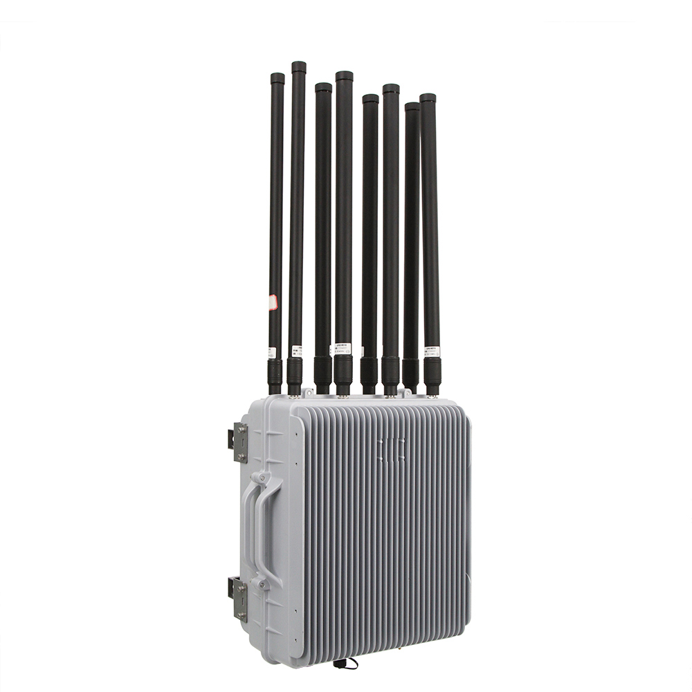 El equipo de supresión de radio transmite señales de interferencia de alta potencia a través de antenas omnidireccionales e implementa interferencias en el UAV objetivo, formando un círculo de valla electrónica, bloqueando la comunicación entre el UAV y el operador, perdiendo la información de posicionamiento del satélite y el control del UAV.